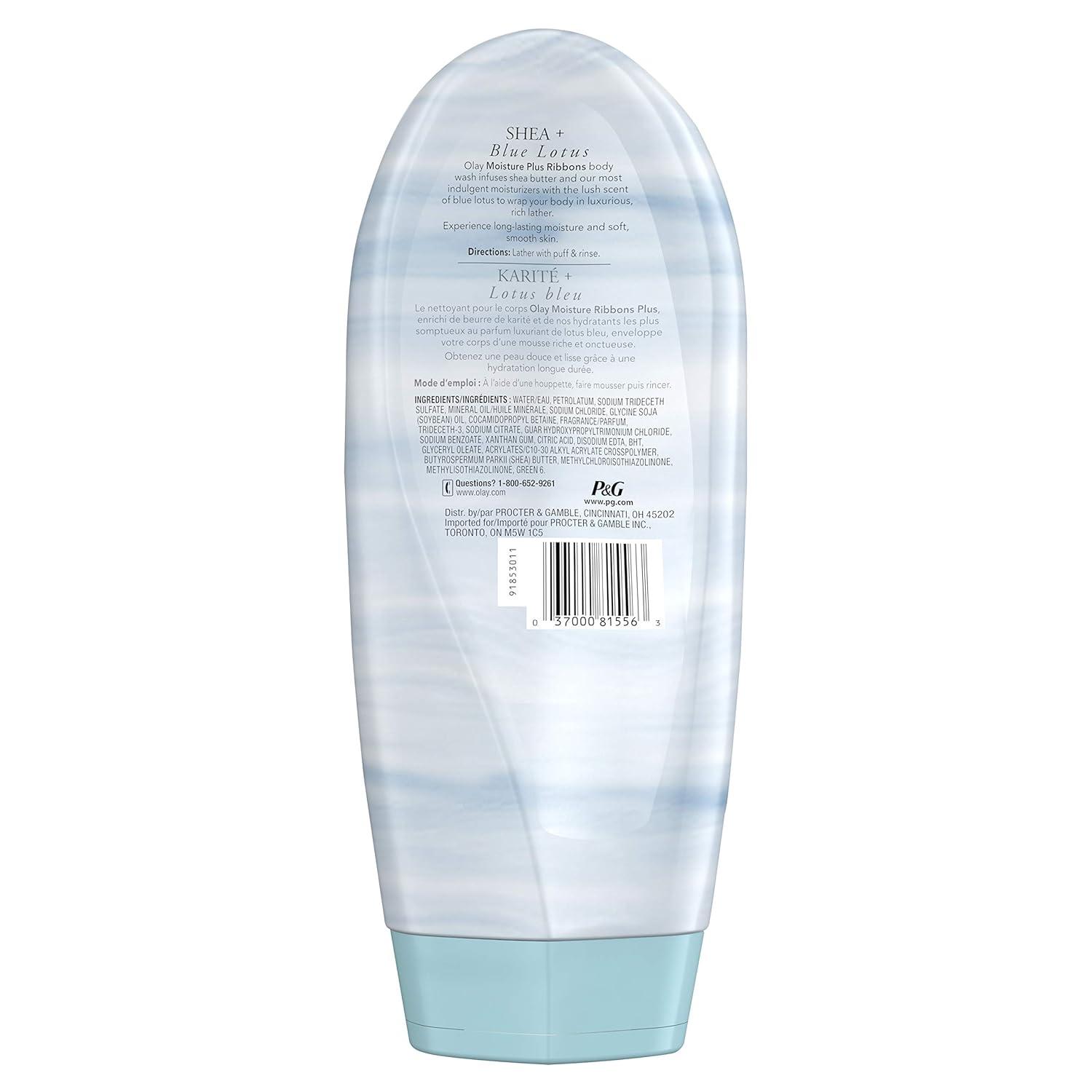 Olay Moisture Ribbons Body Wash with Shea and Notes of Jasmine Petals, 18 fl oz, (Pack of 4)(Blue Lotus + Shea)