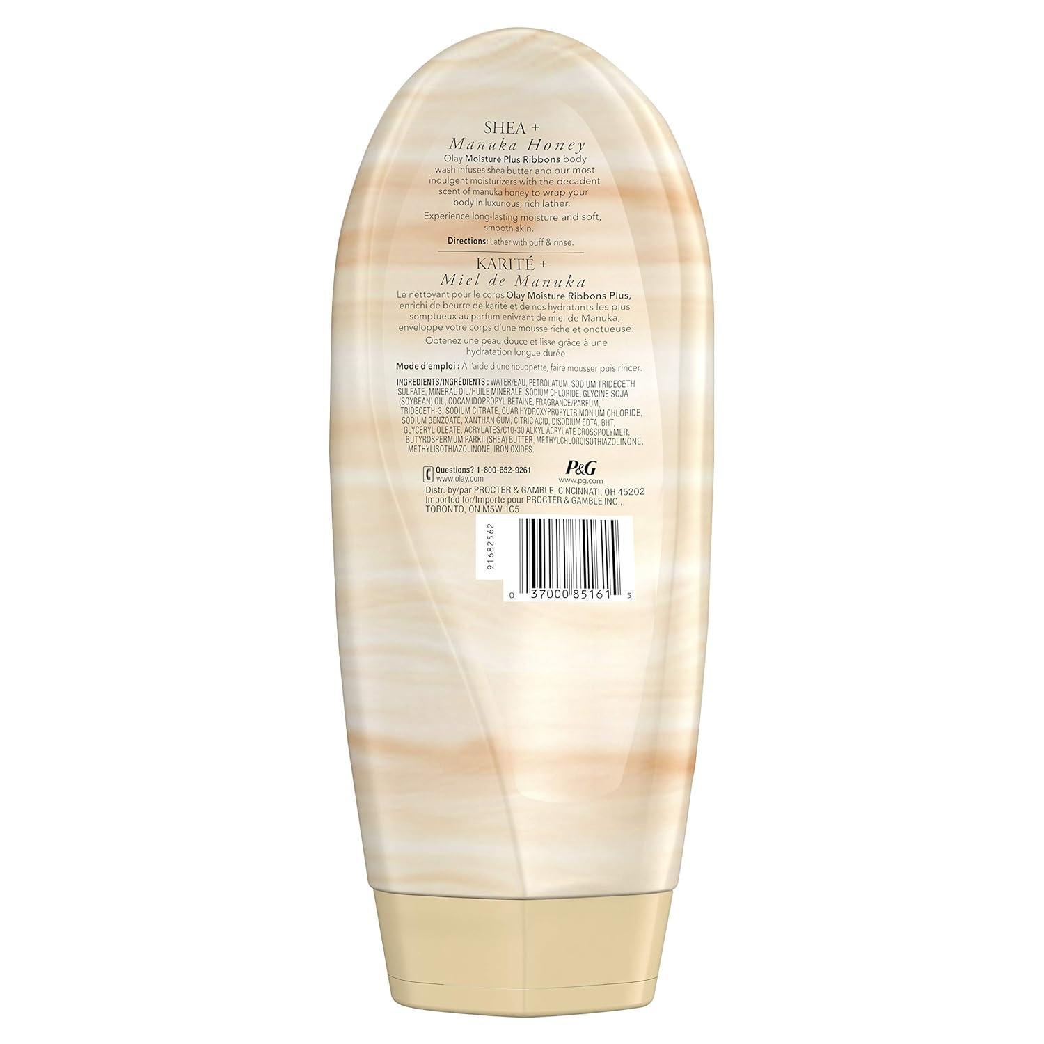 Olay Moisture Ribbons Body Wash with Shea and Notes of Jasmine Petals, 18 fl oz, (Pack of 4)(Honey)